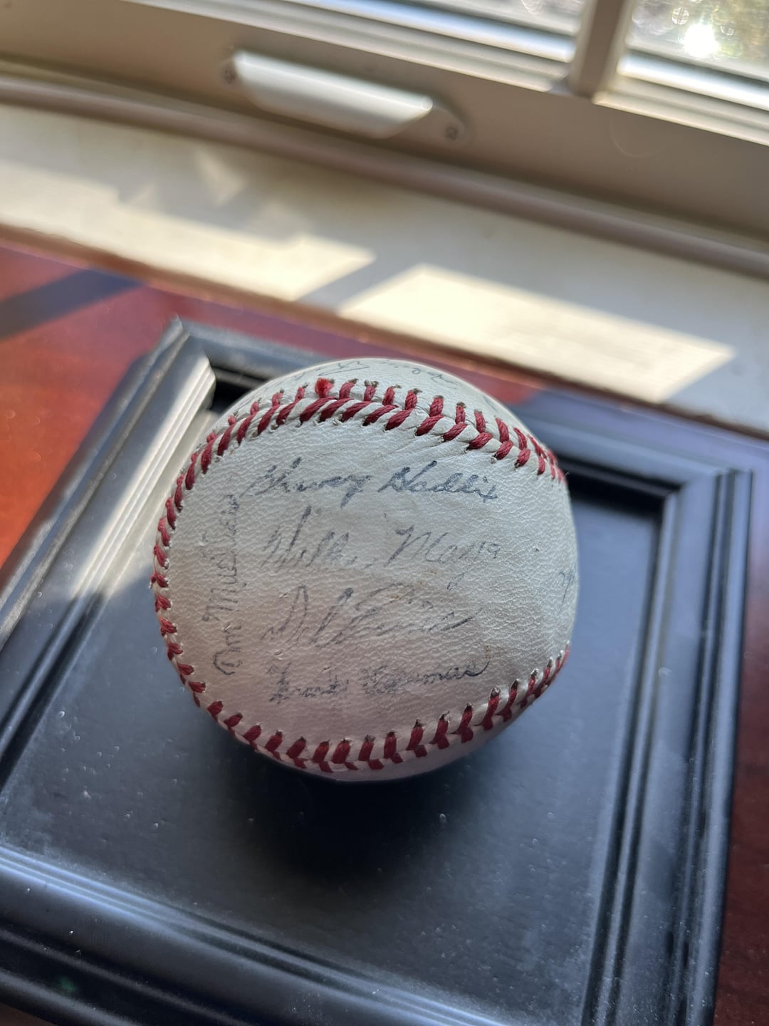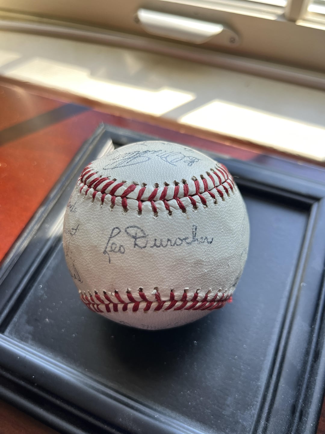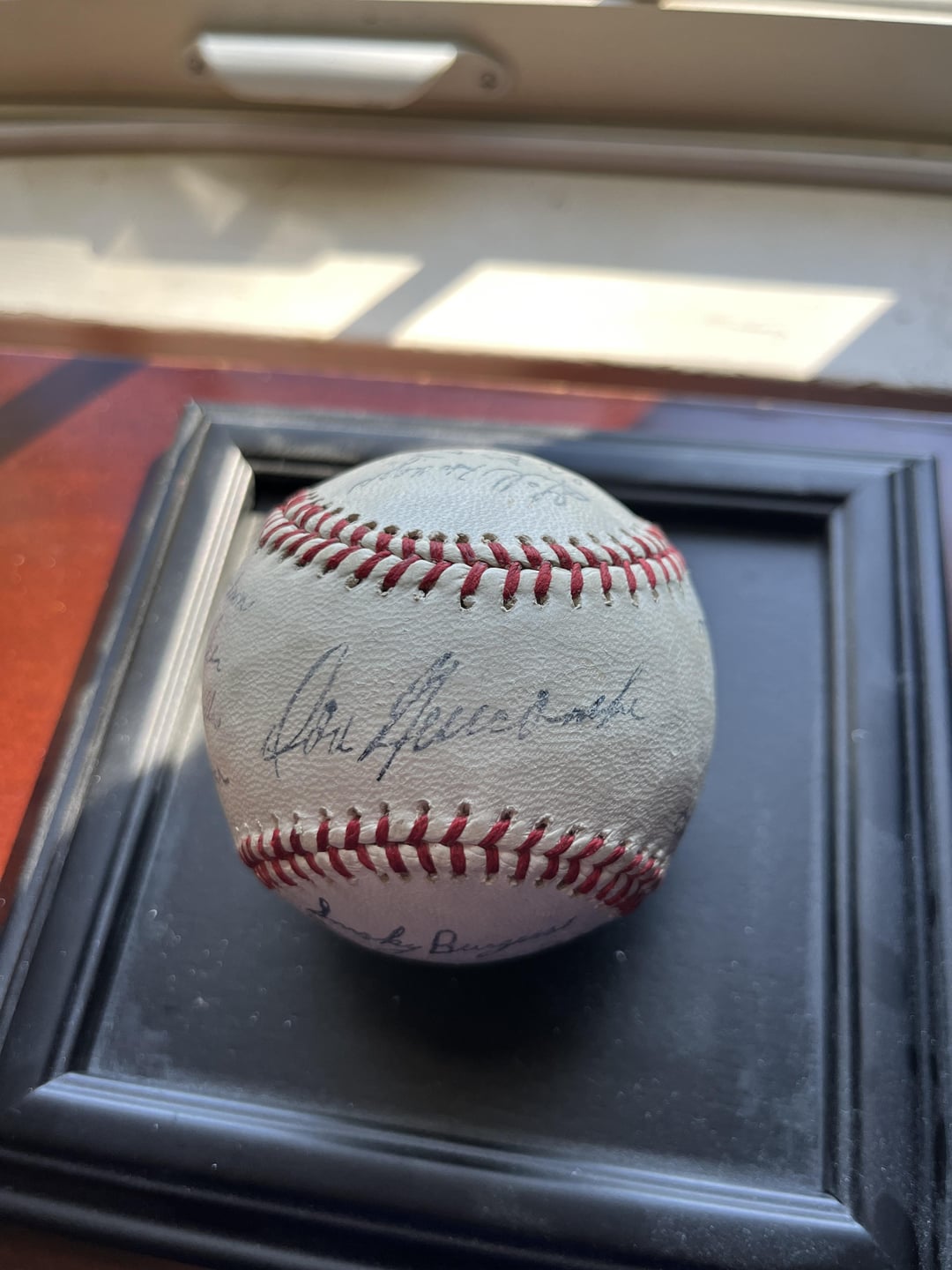 J’ai cette balle avec un tas de signatures mais je n’arrive pas à distinguer les noms. Y a-t-il quelqu’un qui reconnaît des signatures et qui a une idée de quelle année et de quelle équipe il s’agit ?