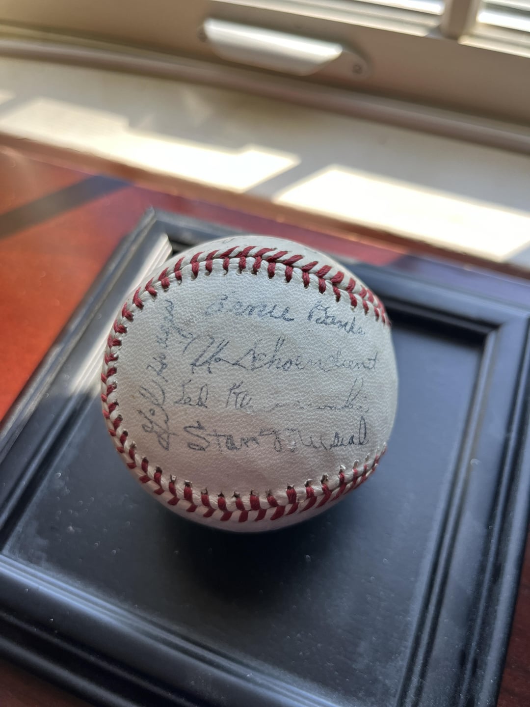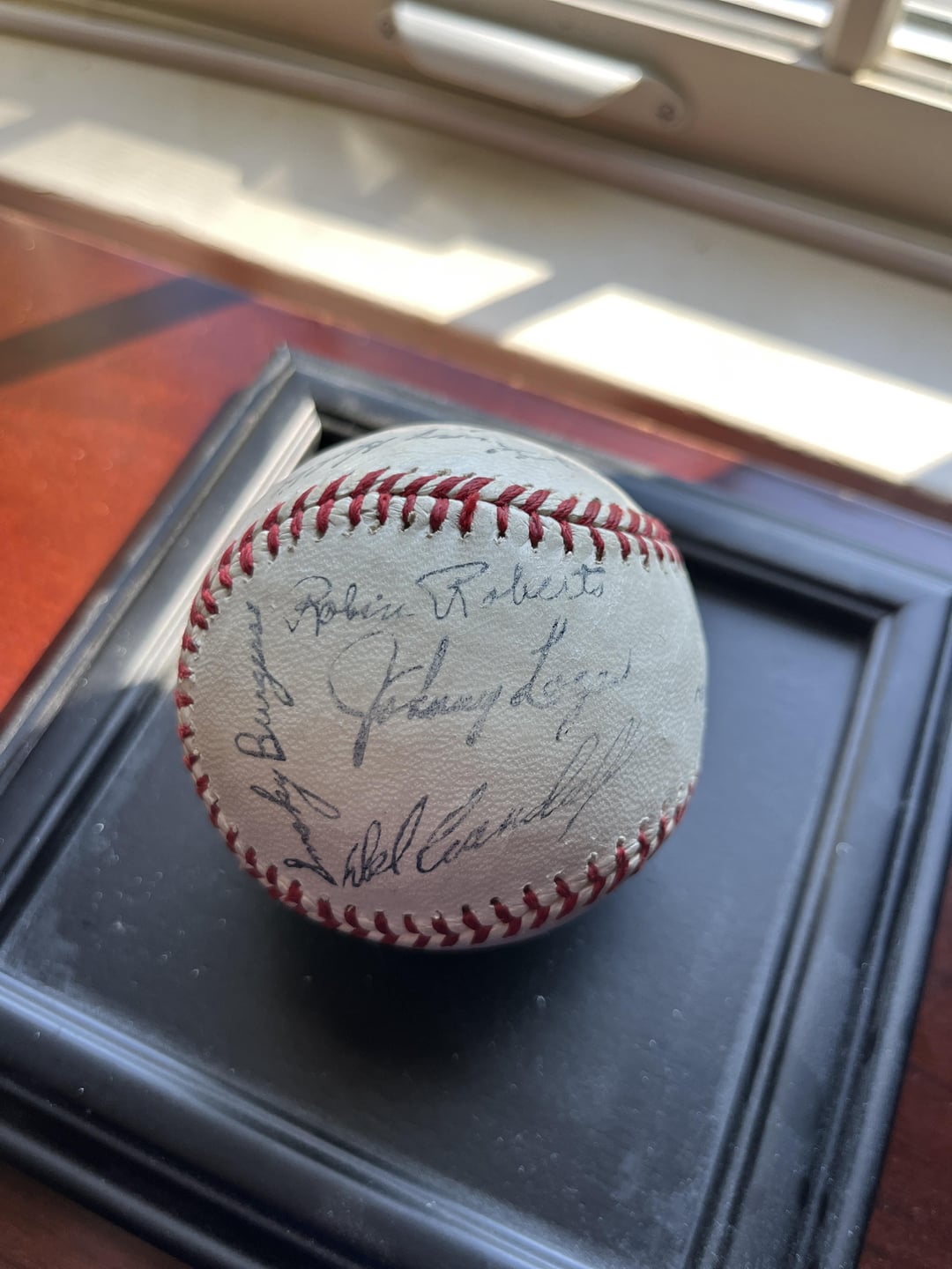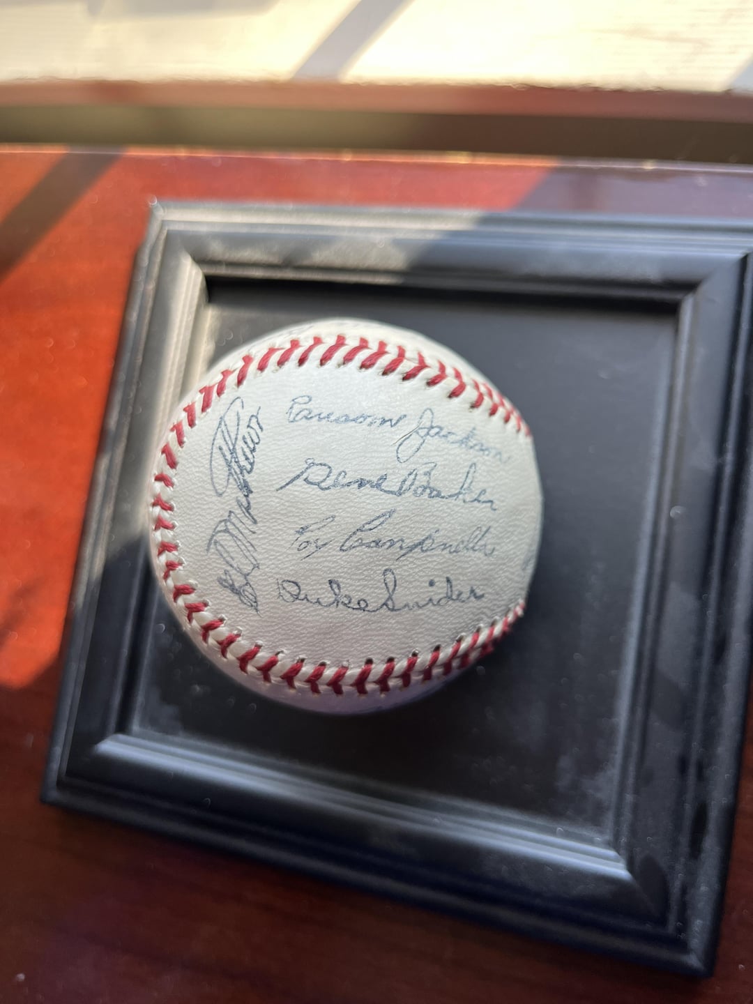 J’ai cette balle avec un tas de signatures mais je n’arrive pas à distinguer les noms. Y a-t-il quelqu’un qui reconnaît des signatures et qui a une idée de quelle année et de quelle équipe il s’agit ?
