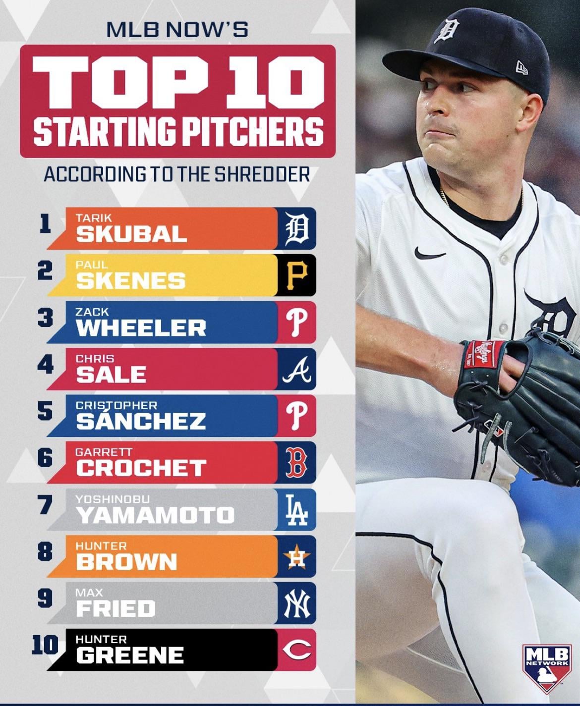 Skenes (7) was ranked higher than Skubal (8) on their top 100 players list.