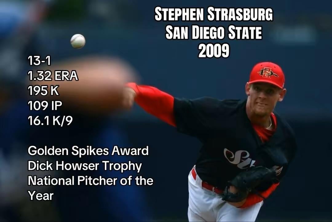 Strasburg was so much fun, was a freshman that year and got to see him pitch! Electric stuff!! Place was sold out