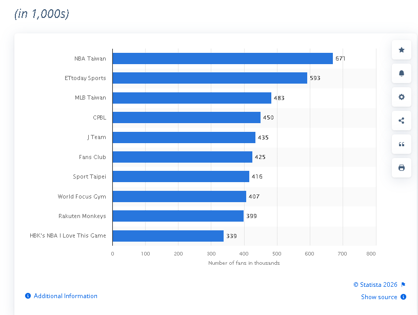 Pages sportives les plus suivies à Taiwan, étonnamment, la MLB n’est pas la première !