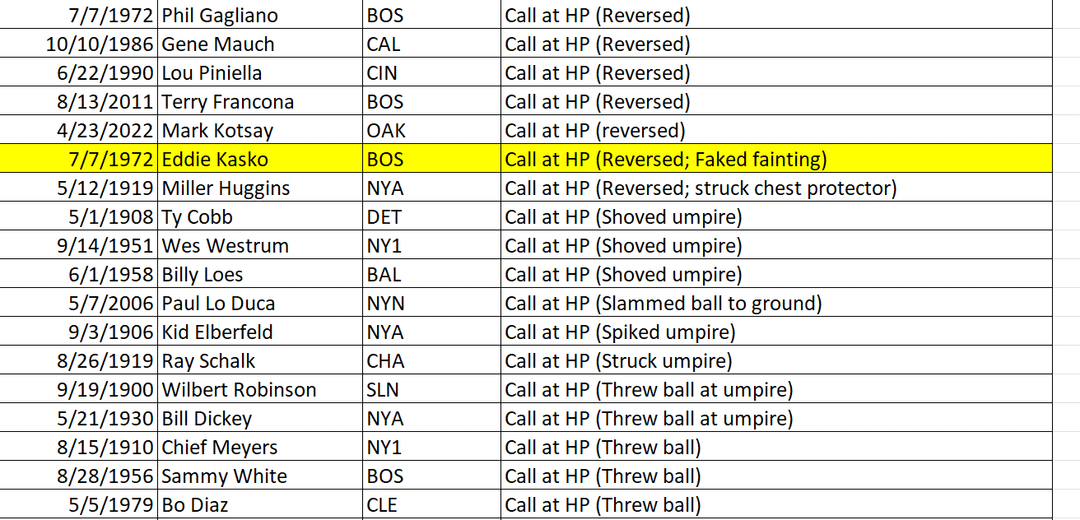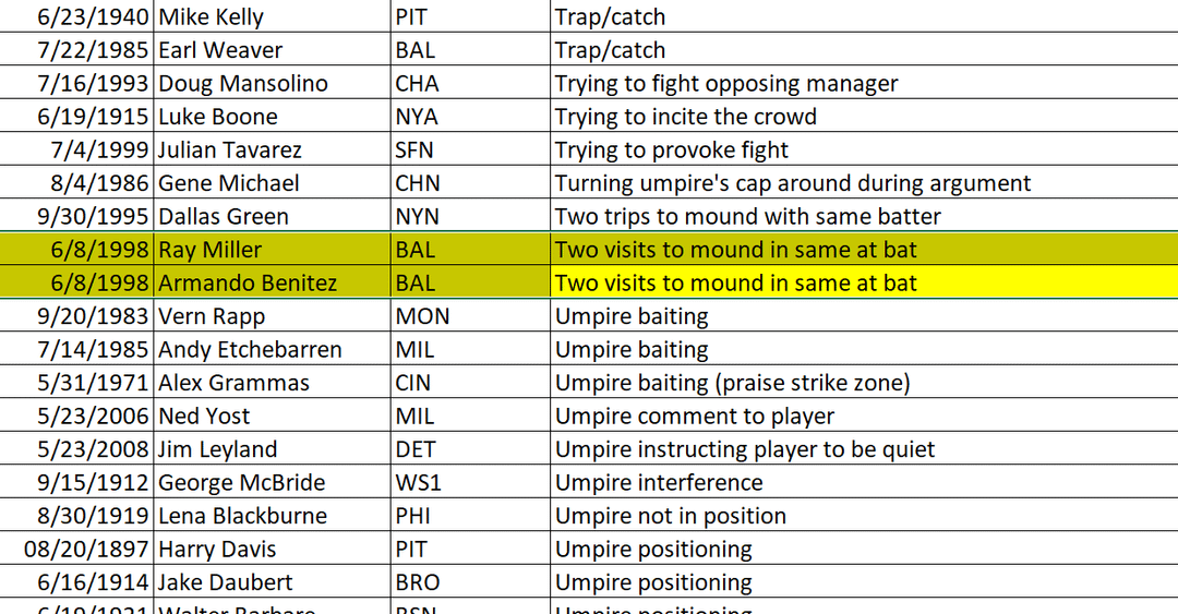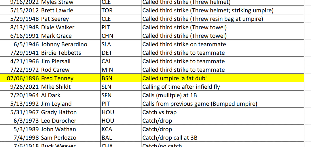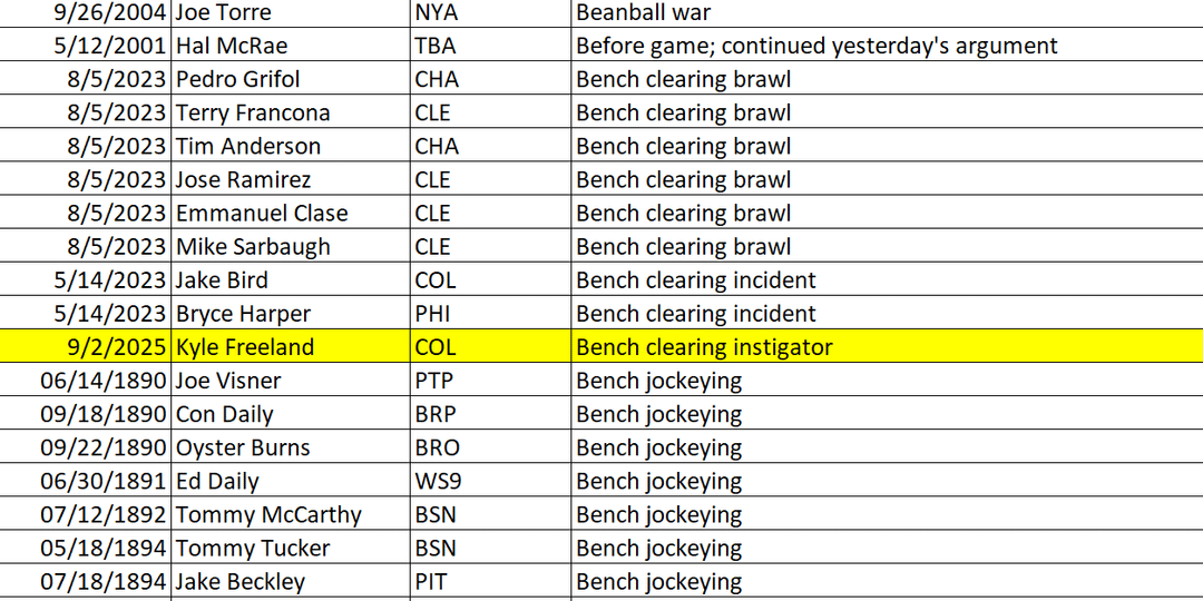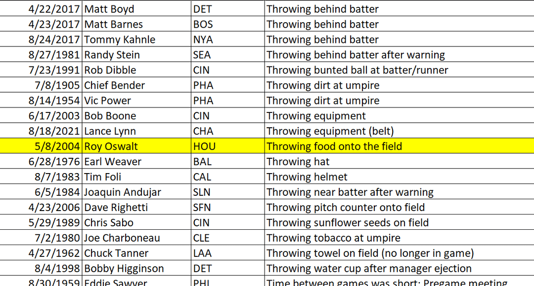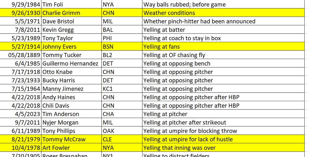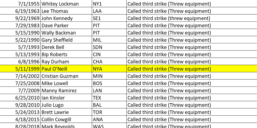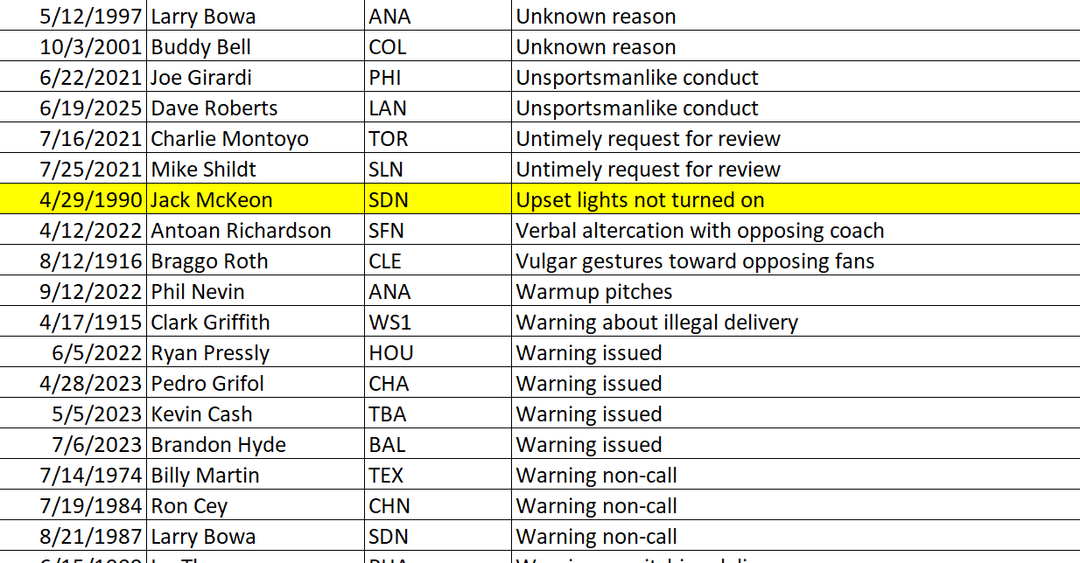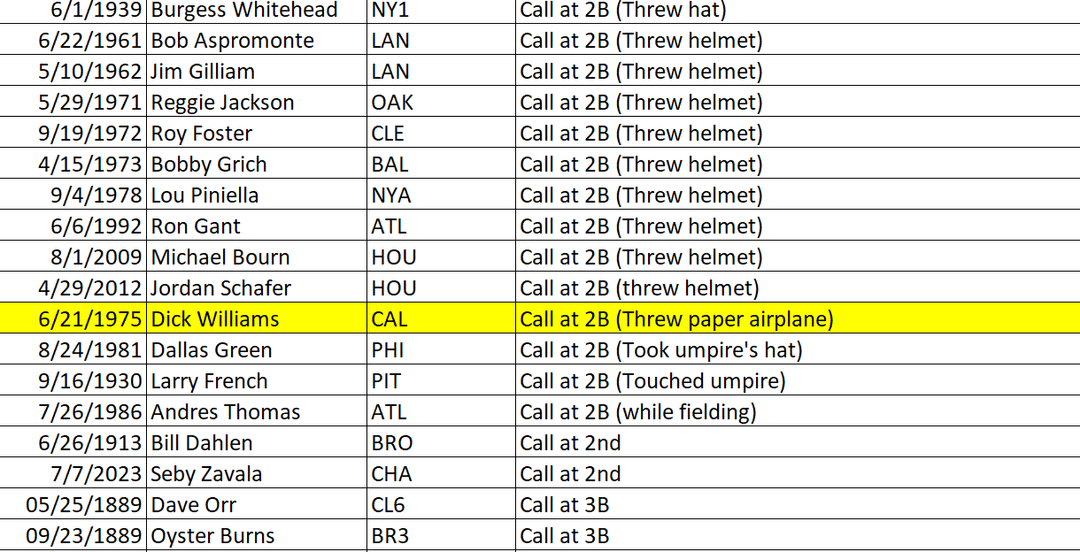 Trouvé à partir de https://www.retrosheet.org/eject.htmJe peux voir visuellement ces éjections dans ma tête.— Par bkat004 BaseballLA LMBLALMBLigue majeure de baseballLigueMajeureDeBaseballLMBMajor League BaseballMajorLeagueBaseballMLB 1 Comment gursur 1 mois ago Weather conditions???Write A CommentVous devez vous connecter pour publier un commentaire.
