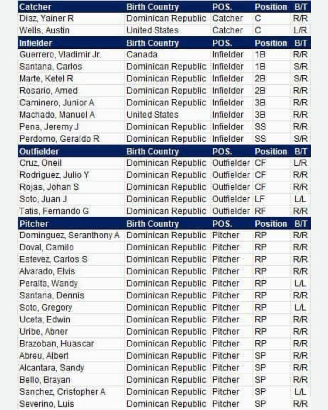 Roster officiel de l’équipe nationale dominicaine 🇩🇴 pour le WBC 2026.