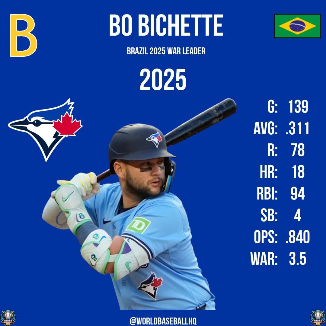 Bo Bichette isn’t on the Team Brazil roster. His brother, Dante Bichette Jr., who these days goes by Alphonse owing to his father’s alleged abuse, is.