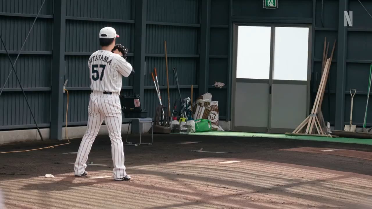 (Netflix Japon) Yu Darvish (qui occupe un rôle de conseiller pour Samurai Japan ce WBC 2026) encadre le RHP Koki Kitayama, 26 ans, lors de sa séance d’enclos des releveurs, fournissant des conseils sur l’horloge de pitch et le PitchCom ainsi que sur la profondeur de la prise de sa balle courbe.