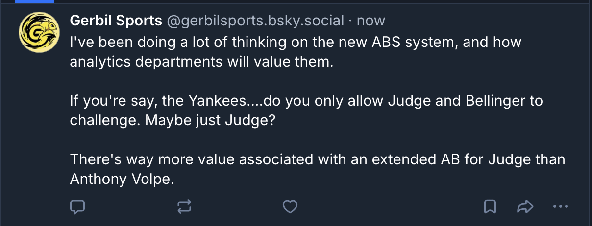 Cal will get broad challenge privileges, I’m sure. I can see some of the pitchers getting banned entirely from challenging (Kirby in particular) but for pitching it makes way more sense to have the catcher challenge anyway.