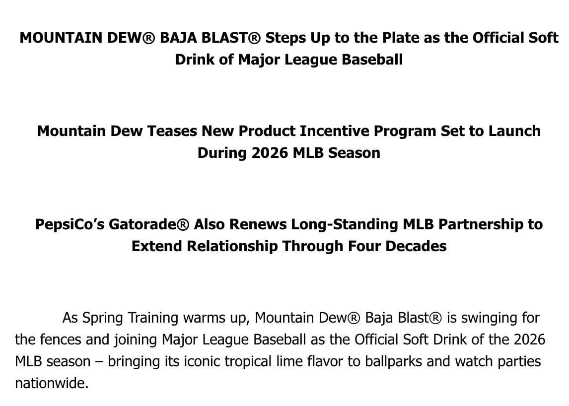 Mountain Dew Baja Blast annoncé comme boisson gazeuse officielle de la MLB— Par oldtombombadil Baseball 16 Comments Ok_Whatever999 5 heures ago I’m good. TheWeeWeeWrangler 5 heures ago If this was 2007 I’d have been stoked Skraxx 5 heures ago Dude baseball is so back Firebitez 5 heures ago Ill be drinking my Baja Blast while not watching the Angels at spring training. Beautiful-Tip7445 5 heures ago Everyone stop what the fuck they’re doing holy shit Lucky_Alternative965 5 heures ago Thanks for reminding me mountain dew exists blogoman 5 heures ago Baja Blast is the worst of the Mountain Dews. TurboViking90 5 heures ago I want a cheesy gordita crunch all of a sudden. iheartsunny 5 heures ago  Deadybears 5 heures ago Hell yeah AerieElectrical3546 5 heures ago this changes everything giziti 5 heures ago Hell yes Informal_West_6864 5 heures ago BRING BACK STEROIDS, FUCKERS. And volcano tacos bevendelamorte 5 heures ago baja blast is supposed to be lime?i thought it was baja flavored. StinkSquach 5 heures ago Are they having a Diabetes giveaway day too? Wyden_long 5 heures ago IM ALL JACKED UP ON MOUNTAIN DEW!!!Write A CommentVous devez vous connecter pour publier un commentaire.