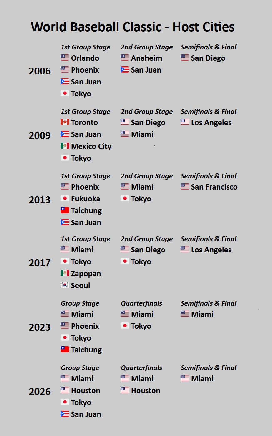 Would never happen but would be fun if the WBC was changed to a host/co-host format where a specific group of cities within a geography host all the games like the FIFA World Cup. Would add more flair to each of the tournaments and imagine a WBC Final featuring Japan in Tokyo Dome.