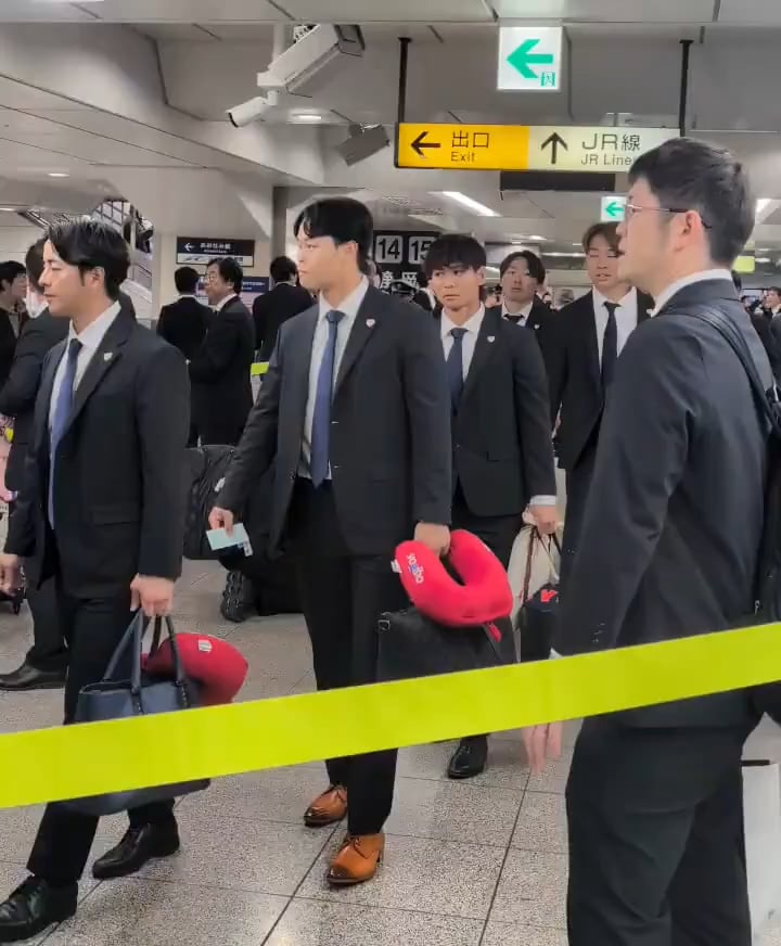 Samurai Japan à la gare de Nagoya se prépare à se rendre à Osaka en Shinkansen (train à grande vitesse japonais) pour jouer contre les Orix Buffaloes lors des derniers matchs d’exhibition de mise au point. Ohtani, Suzuki, Murakami, Okamoto et Yoshida devraient tous jouer.