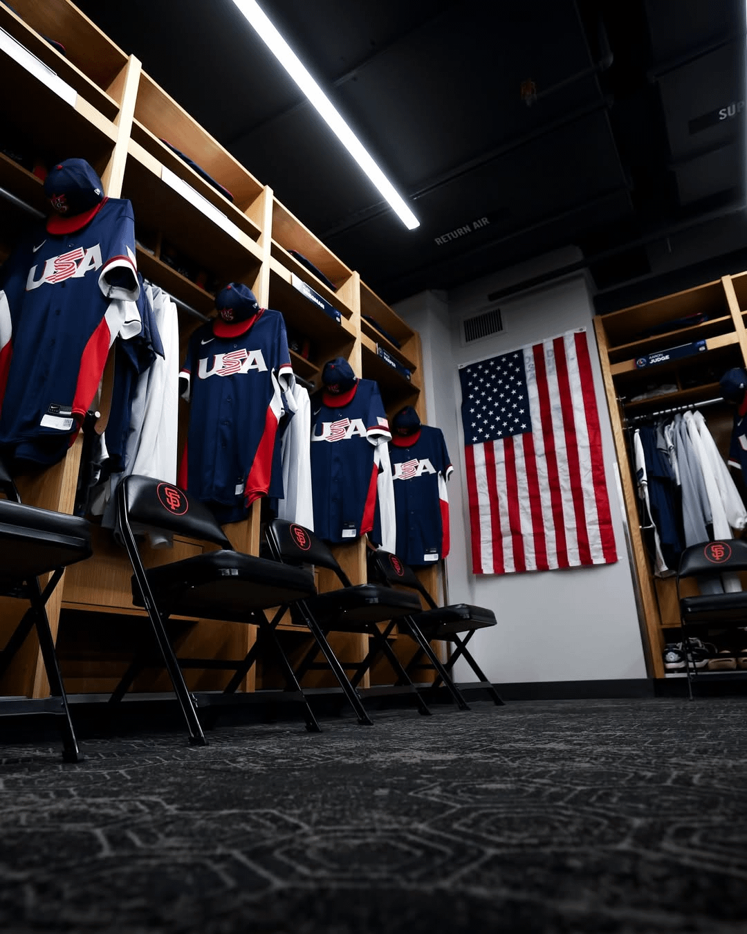 Le vestiaire de l’équipe américaine est préparé avant l’arrivée de l’équipe. (@usabaseball)— Par baribigbird06 Baseball 5 Comments The2econdSpitter 3 heures ago I love the jersey logo. Hate the cap logo. z00ch55 3 heures ago I seen somebody say once that the hat and jersey look like they’re from two different sets of uniforms and I’ll be damn, they were right. SaltCakeCity14 3 heures ago Where is this locker room? What facility are they using? b3_yourself 3 heures ago Think they could use more American flags WorkingCheesecake786 3 heures ago those sweet sweet bacon stripsWrite A CommentVous devez vous connecter pour publier un commentaire.