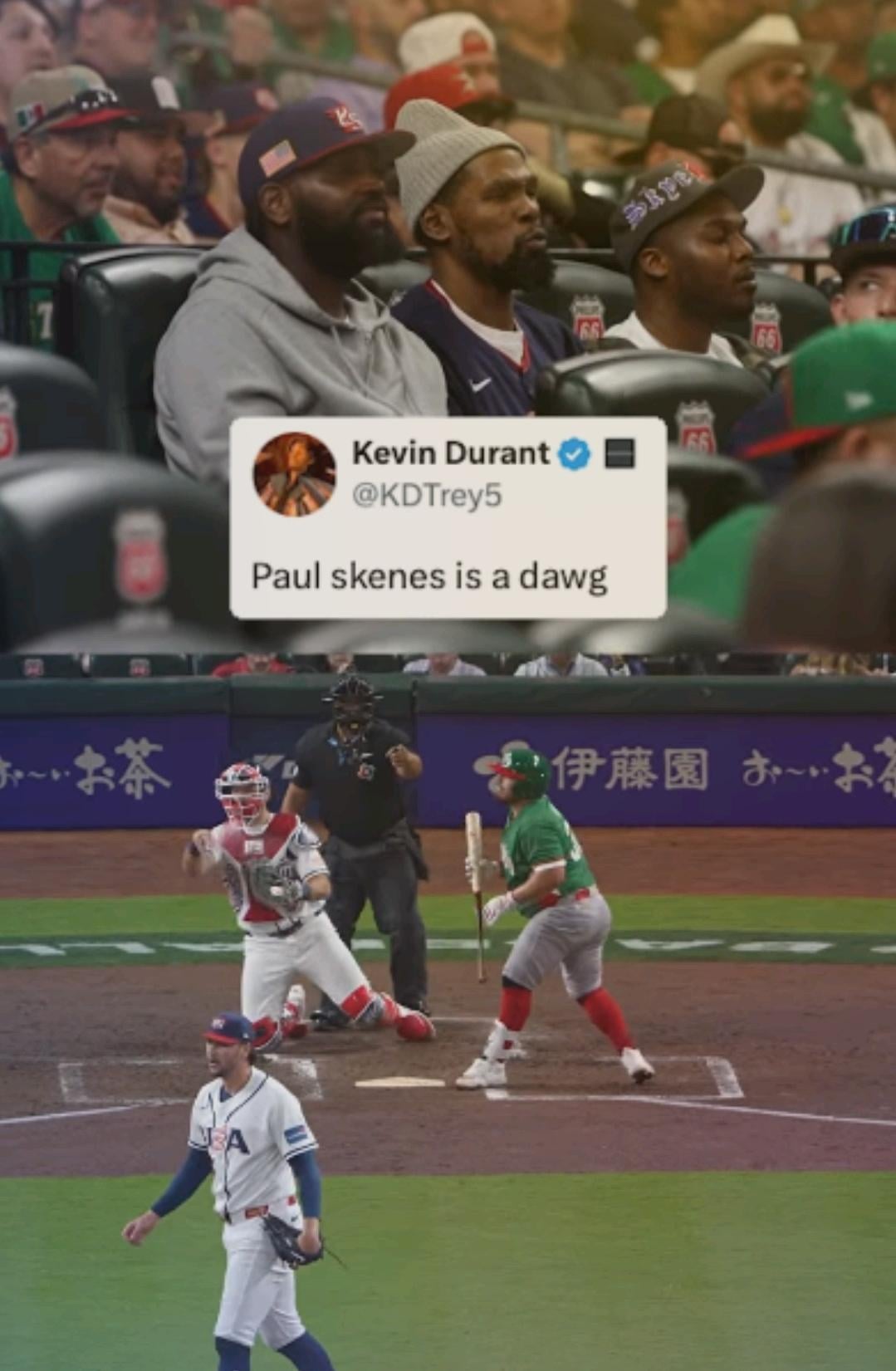 Kevin Durant profitait de Paul Skenes ce soir au Daikin Park— Par noahlylesusa Baseball 10 Comments [deleted] 8 heures ago [deleted] MyChemicalMaiden 8 heures ago What he say on the burner though? horsepoop1123 8 heures ago This is a distraction from the KD Files PassToMouth6911 8 heures ago Higher than Jesus on the cross k_realtor 8 heures ago Paul Skenes vs Ohtani. That’s what I want to see.Legend vs Legend.and then if Japan runs out of pitchers at the last game, 9th inning, They need an emergency closer…Ohtani vs Judge.You know you want to see that. Fuzzy-Heart 8 heures ago I personally love that KD had a burner account. We got to see the unedited commentary. Class A internet personality. interstitialmusic 8 heures ago But can this dawg play with these cats? A_N_T 8 heures ago *Deion Sanders voice:* Paul Skenes is a dawg, shout out Shaboozey. Lieutenant_Doge 8 heures ago KD heard they’re building a dream team and want in i_run_from_problems 8 heures ago Dang….. from the main account.Write A CommentVous devez vous connecter pour publier un commentaire.