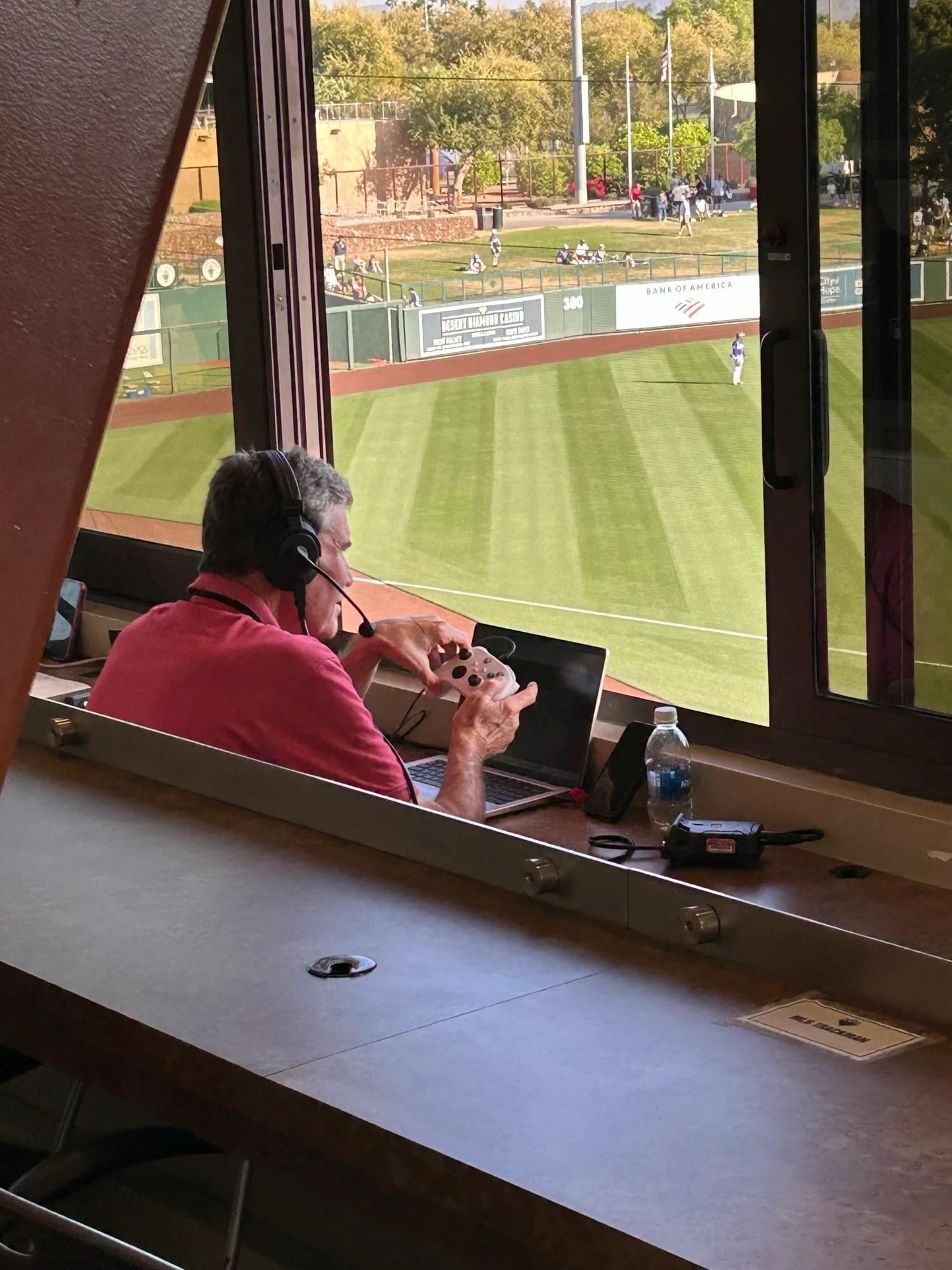 (Hogg) Tout le monde, s’il vous plaît, versez-en un pour mon homme ici. Rien ne lui est arrivé, il a juste dû faire fonctionner avec diligence le chronomètre des lancers pendant 450 lancers en 3,5 heures, et ce match n’est même pas encore terminé. Et, oui, ils utilisent ici un contrôleur XBox pour le pitch timer.