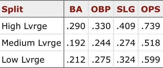 Patrick Bailey est un joueur offensif tellement drôle. Un gars ne peut pas du tout frapper une balle de baseball À MOINS s’il est dans une situation d’effet de levier élevé, alors il devient un excellent frappeur.