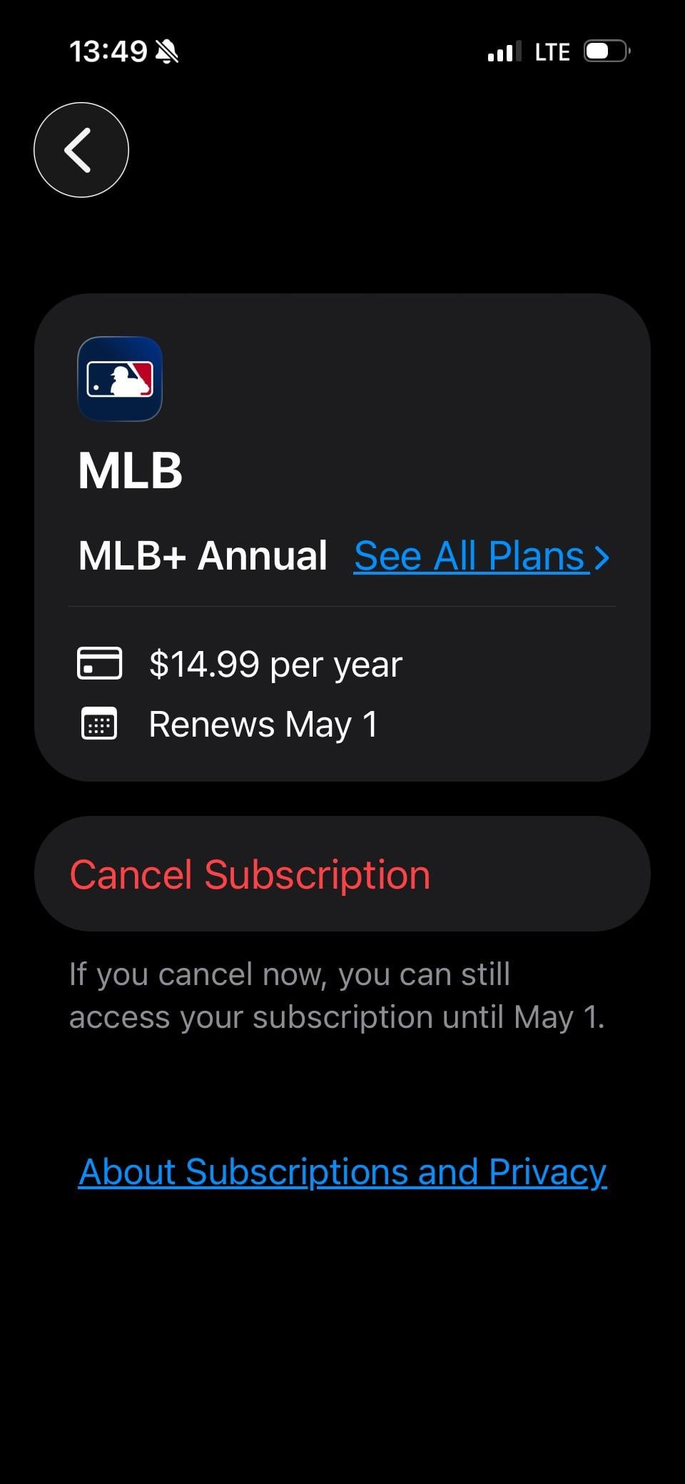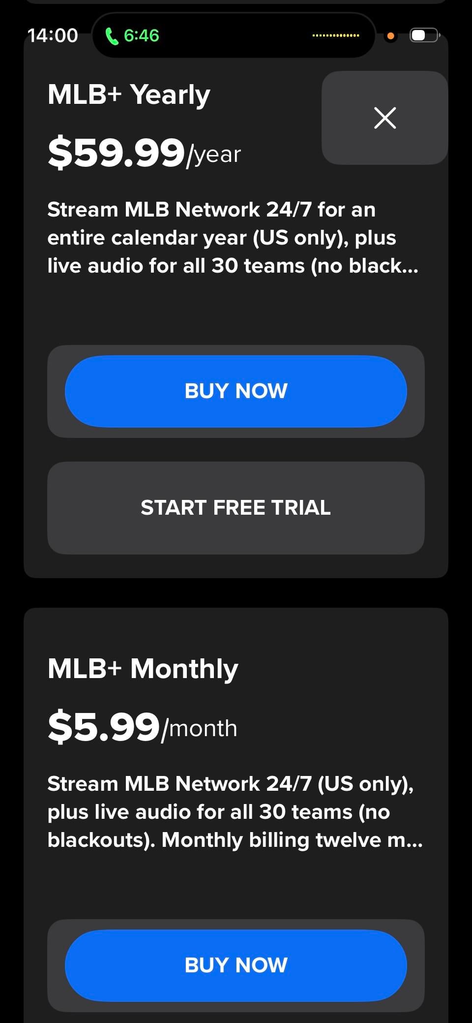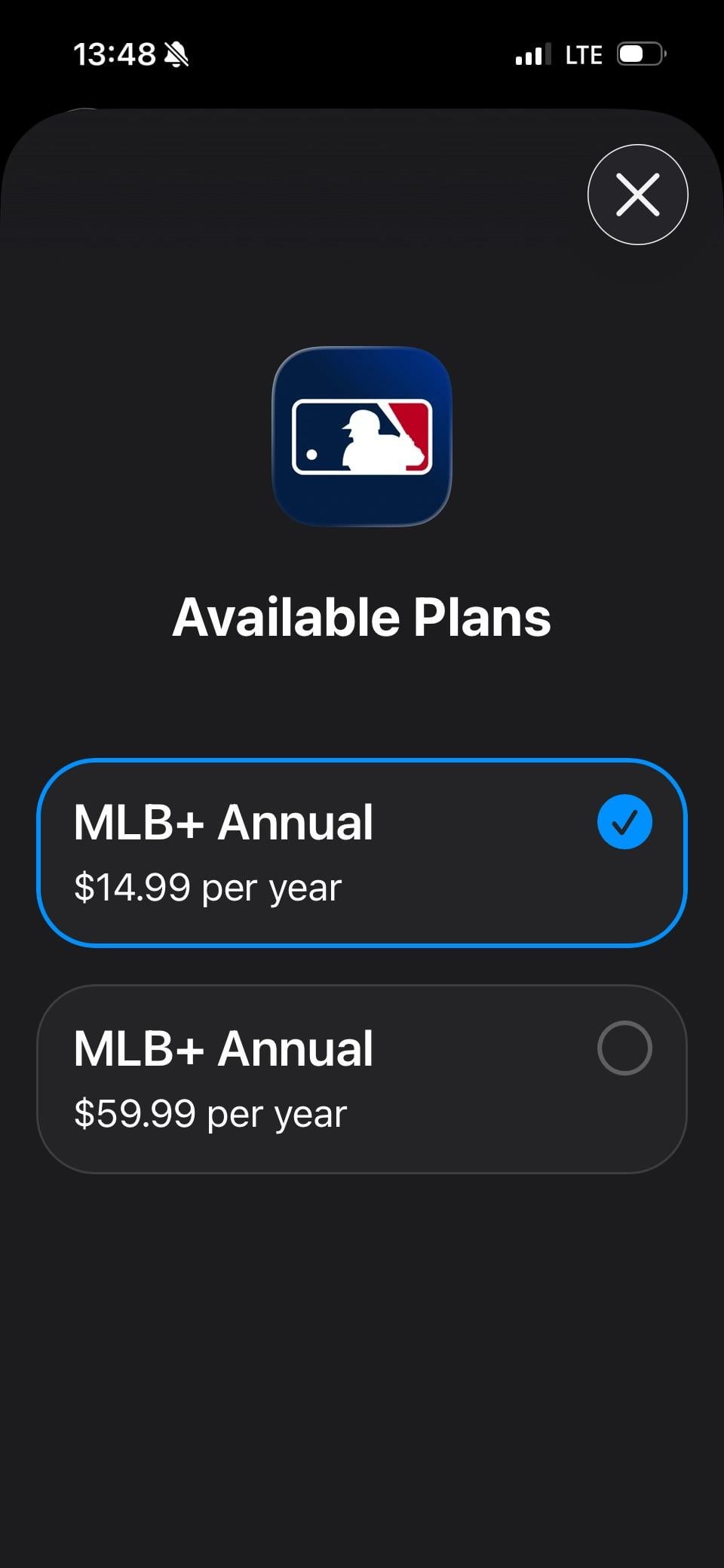 J’ai sauté sur l’application MLB pour écouter certains matchs comme je le fais chaque année, pour constater que mon abonnement ne se renouvelle que le 1er mai. Quand je suis allé voir si je pouvais l’acheter maintenant, cela m’a proposé deux options pour apparemment le même produit. Un pour 59 $ et un pour 14,99 $ par an. Grâce à MLB, il existe une option annuelle de 59 $ et une option mensuelle de 5,99 $. Quelqu’un peut-il expliquer ce qu’est l’option à 15 $ ? Au mieux que je puisse comprendre, c’est un report de l’année dernière, mais même cela s’élevait à 29 $ il y a un an.