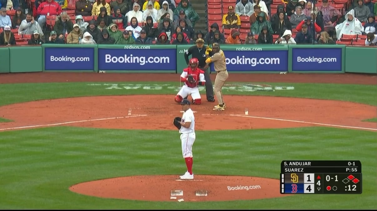 Suarez would strike out Andujar, then walk Bogaerts before letting up a 2 run double to Castellanos.