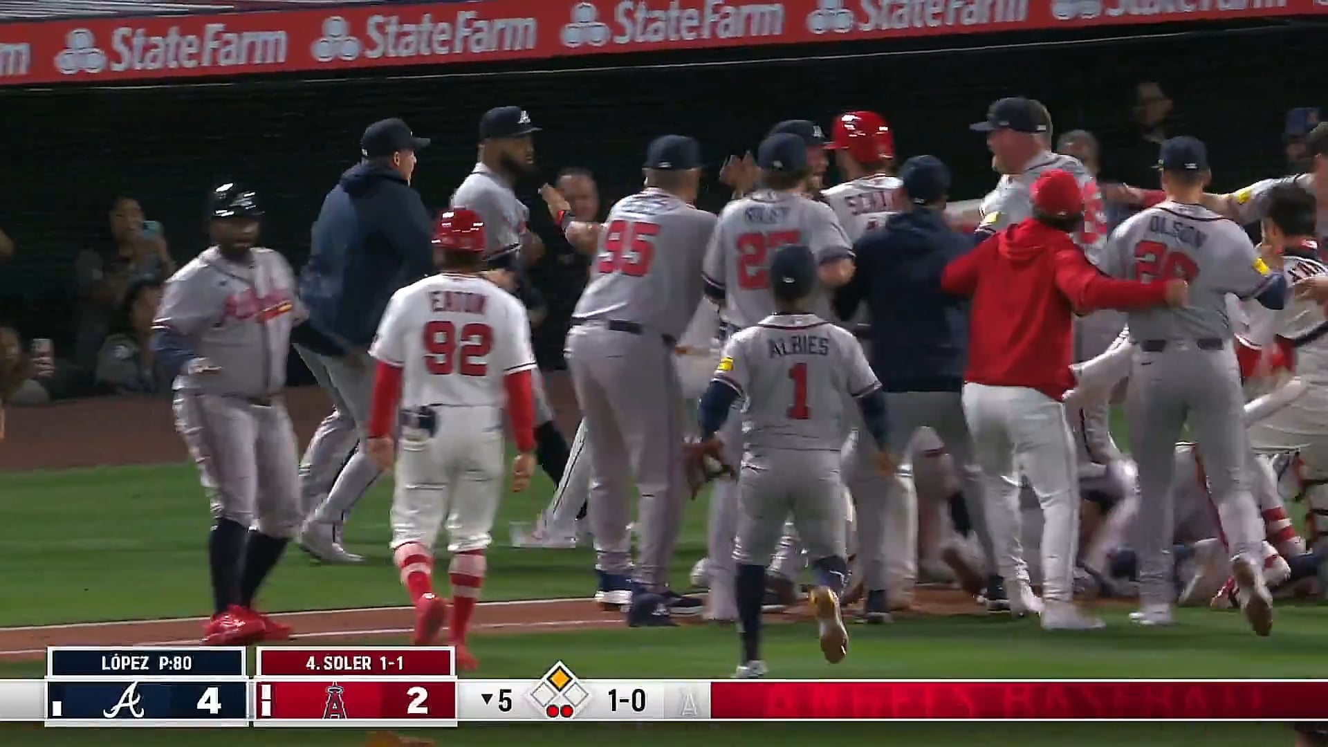 The way that was broadcasted on Braves.tv was a complete surprise. Going from Albies jokingly tagging the runner at 2nd to Lopez and soler throwing punches down the 1st base line.