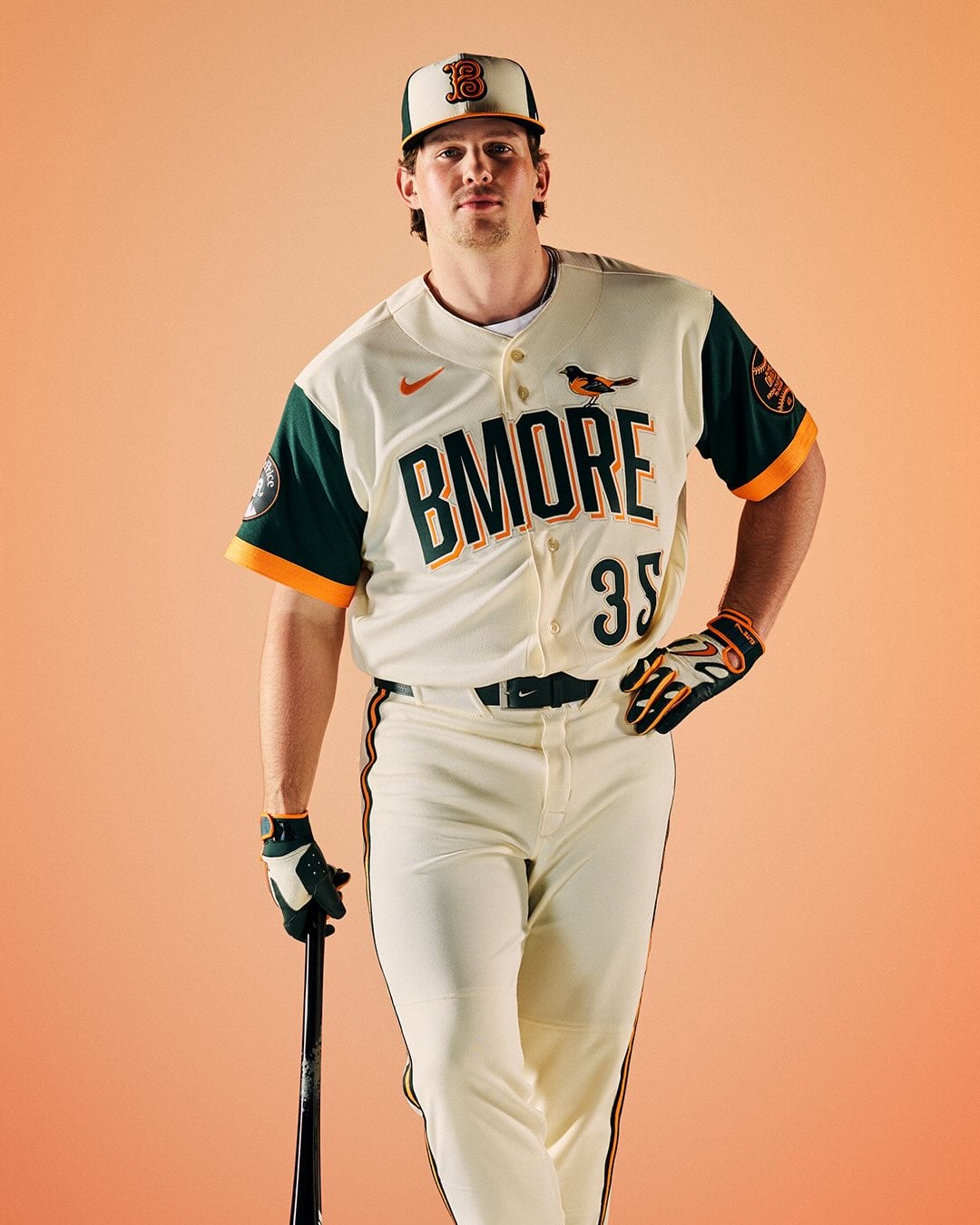 i was one of like two people in the world who genuinely Loved the O’s first city connects so I’m sad to see those go but these are Fine, i guess. love the hat design and the eutaw street plaque patch but think overall it looks a little goofy. hopefully they look good on the field?