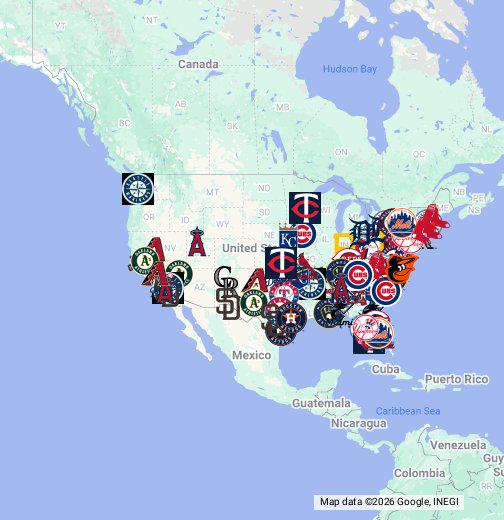 (cela étant basé sur une autre carte par Redditor, qui montre les affiliés des ligues mineures, mais avec leurs propres logos)