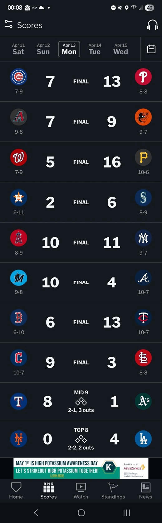 Le 13 avril 2026, un total de 144 points ont été marqués. C’est loin d’être le plus grand nombre de points marqués en une seule journée, mais il est très impressionnant que autant de points aient été marqués avec seulement dix jeux. Cela représente une moyenne de 14,4 points par match.