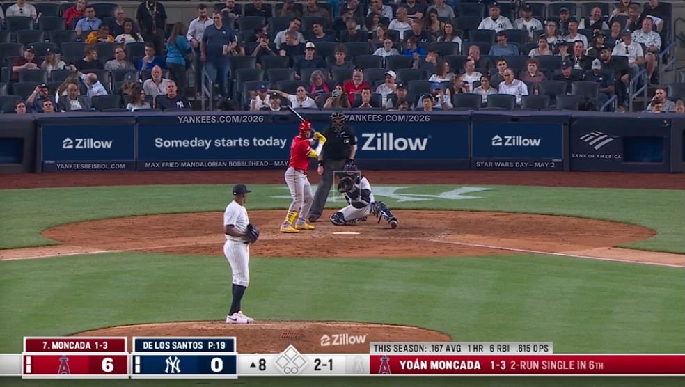 The SF Giants have hit 9 homers this year. The Angels have over half that this game. The Red Sox are second to last with 11 so 1 more the Angels will surpass half the Sox homers this year.