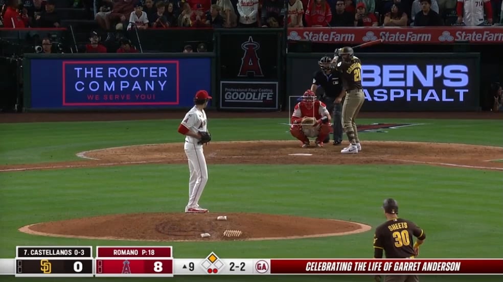 Lors d’une soirée de célébration pour feu Garret Anderson, Jordan Romano élimine Nick Castellanos et les Angels de Los Angeles dominent les Padres dans toutes les facettes du jeu et mettent fin à la séquence de 8 victoires consécutives de San Diego par un score de 8-0.