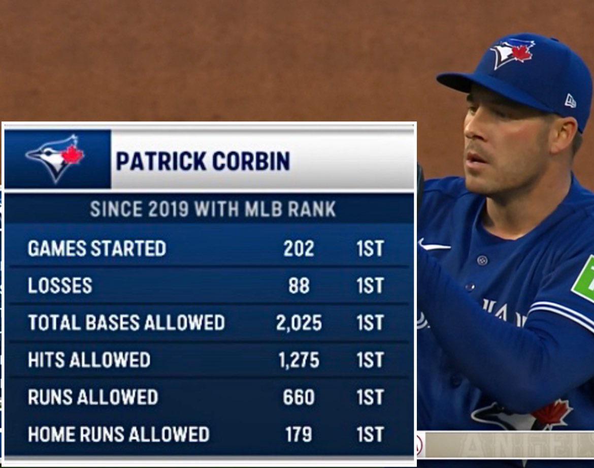 Depuis 2019, Patrick Corbin est premier dans : Jeux commencés, défaites, total autorisé, coups sûrs autorisés, courses autorisées et circuits autorisés.